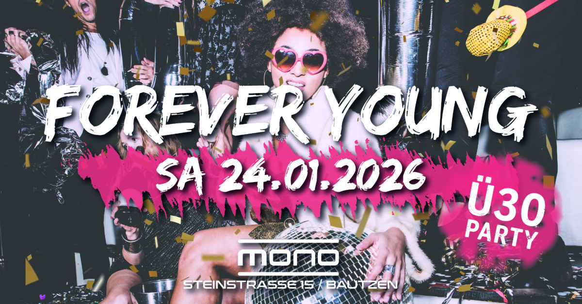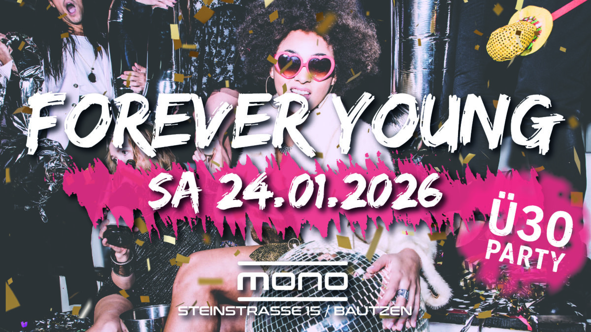 Am Samstag, den 24.01.2026 starten wir mit euch in die erste FOREVER YOUNG – Die Party für Erwachsene im neuen Jahr im MONO Bautzen.