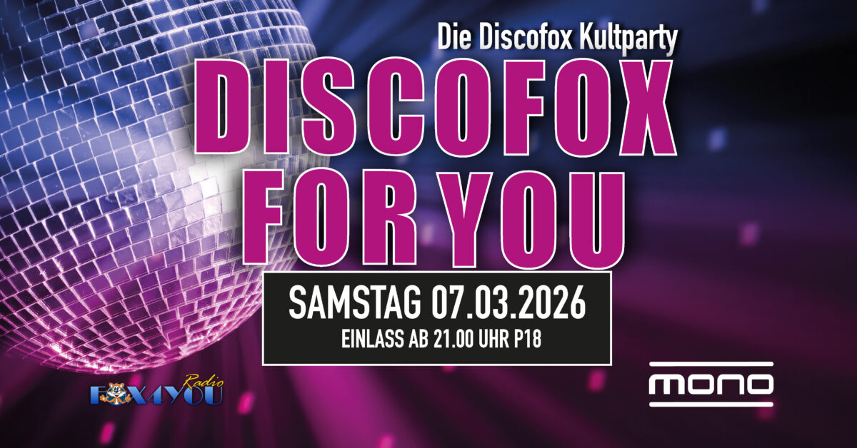 DISCOFOX FOR YOU – SPRING EDITIONSamstag, 07. März | MONO Bautzen Seit 2016 heißt es jeden ersten Samstag im Monat: „Discofox for you“ – die Kultparty […]